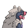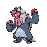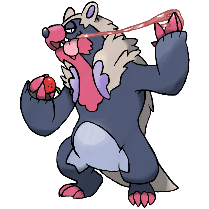 | Berratel eats so many berries that its fur is permanently stained. It waits for other Pokémon to gather berries, and then mugs them for an easy meal.