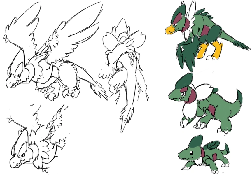 Dilophlora and its evolution line were an alternative design for the Grass Starter Pokémon.