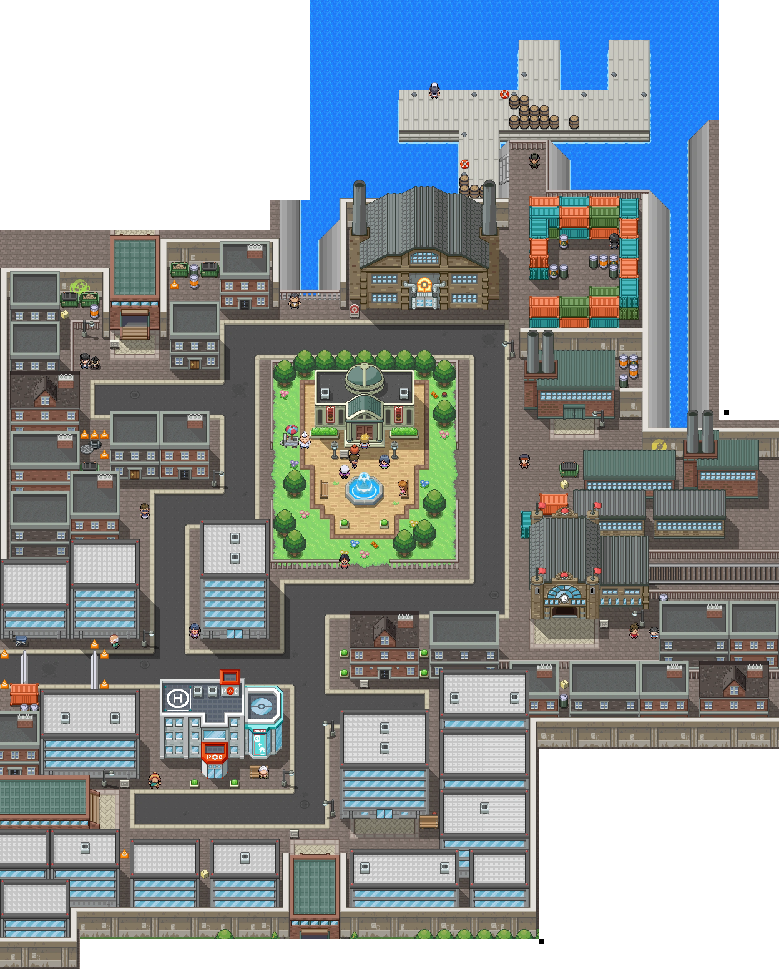 The Poké Mart is part of a combined complex with the Pokémon Center in the south-east part of the city.