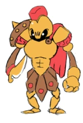 Eronze's "face" evokes the hole of a blacksmith's fiery kiln. While not as overt in the final design, Eronze still retains some elements from previous designs that had it more closely resemble Ancient Greek hoplites and Roman legionaries.