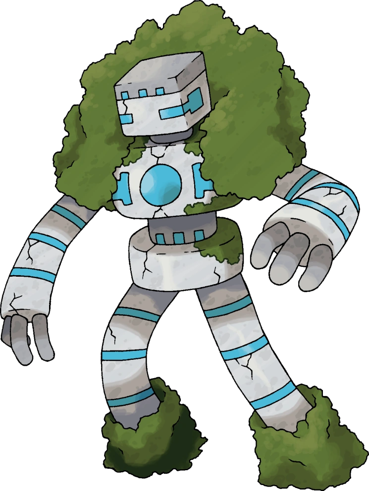Acting as a sentry for temples, Grolem forms a symbiosis with the moss and foliage it wears. Roots run through it like circuitry to deliver solar energy.