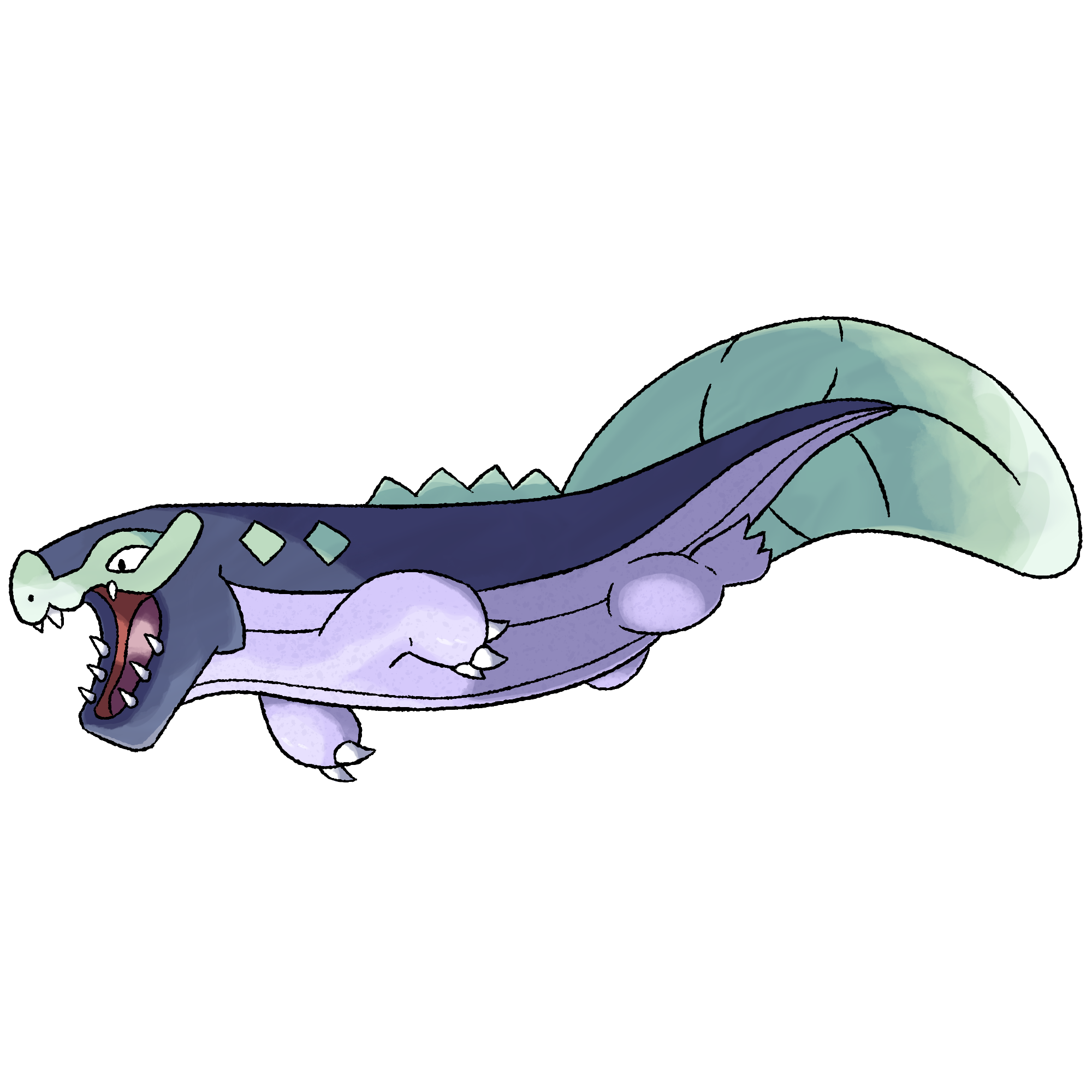 Despite being a fast swimmer, Jawgodon prefers stealing others' prey and eating carrion rather than hunting. It will search on land if food is scarce.