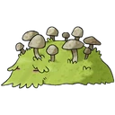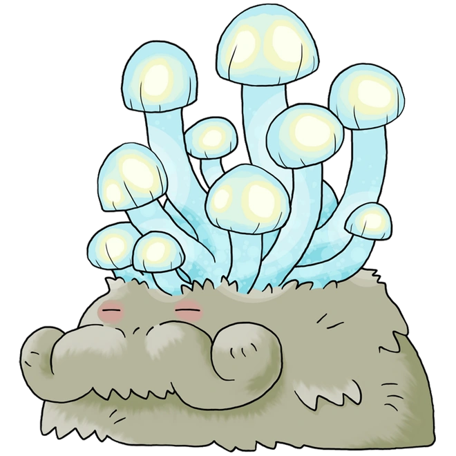 Mosshroom is commonly mistaken for a grass hill. When something bumps into it, it releases spores before shuffling off to find a quiet place to sleep.