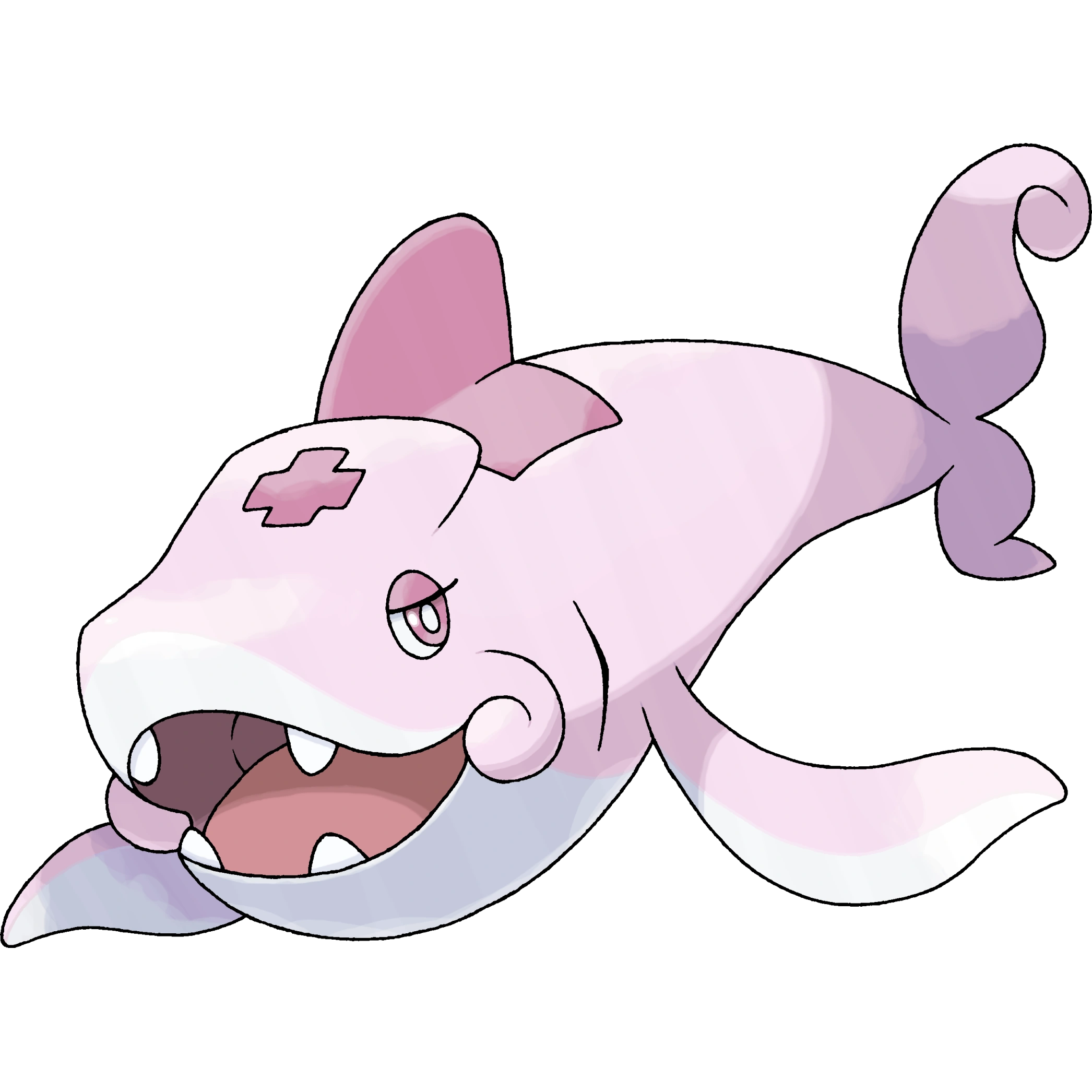 Nushary is based on a nurse shark, as well as the concept of an actual nurse. It is pink and slightly effeminate, akin to other Pokémon that have traditionally been depicted as nurses, and its dorsal fin is shaped like a nurse's cap. The large pink cross on its head is a reference to the International Red Cross symbol which denotes medical intent in much of the world.
