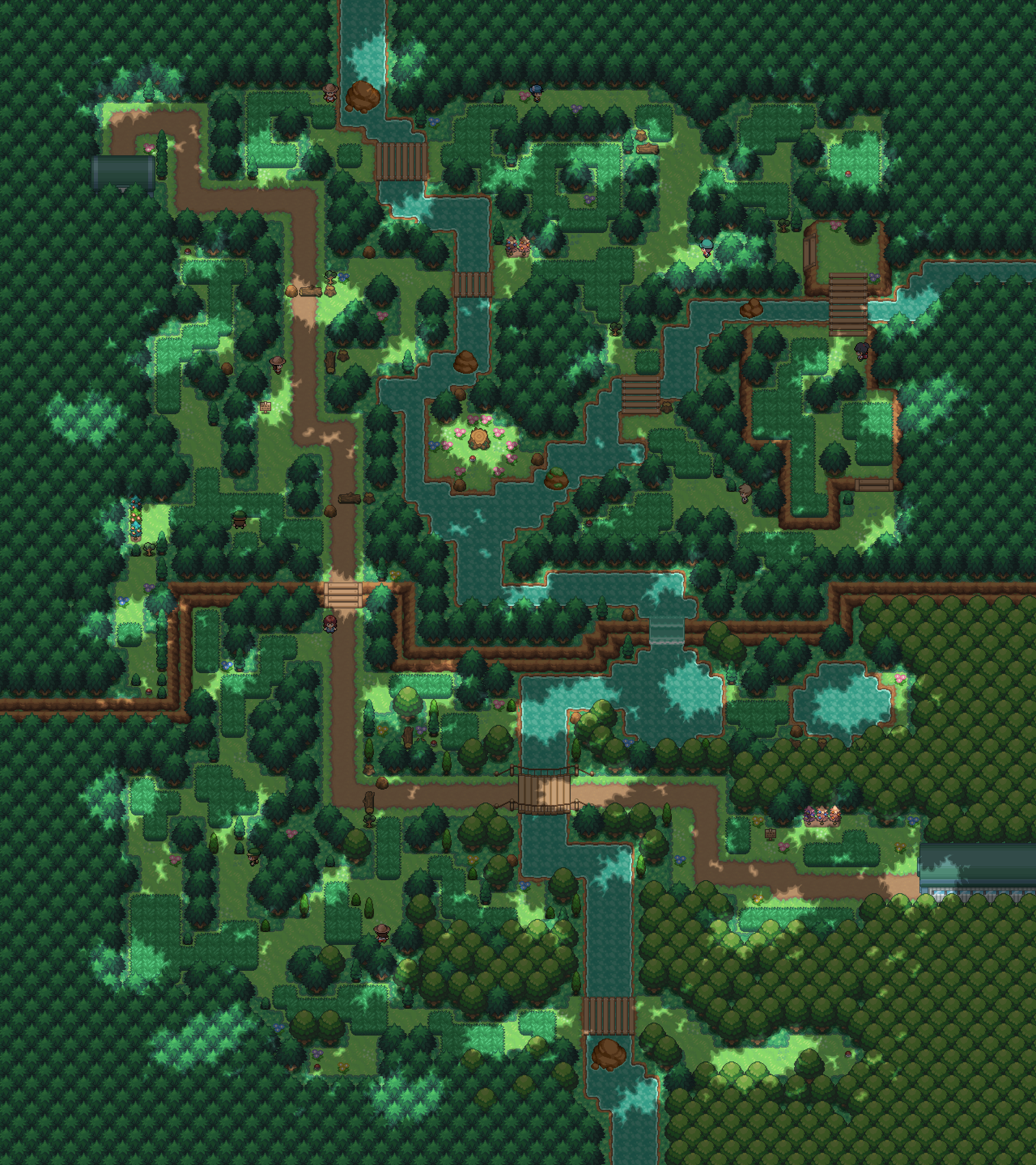 Rustling Forest is a forest that connects Route 3 to the west and Route 4 to the east. It is home to many Bug-type Pokémon.